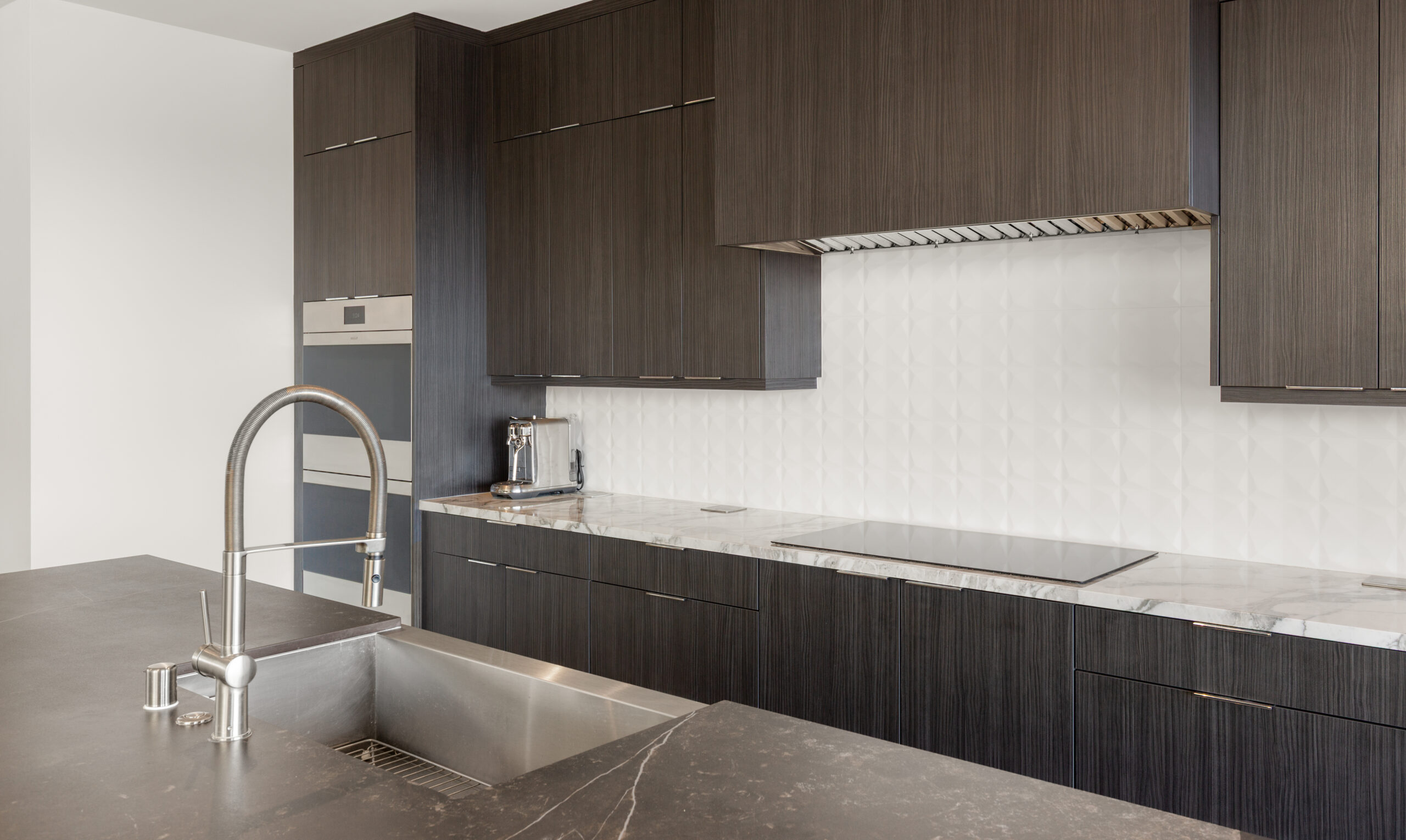 A private courtyard introduces the residence with striking features, including a sculptural floating staircase and a 1,200-bottle glass-encased wine cellar. This entry experience sets the tone for the artistry that defines the home.