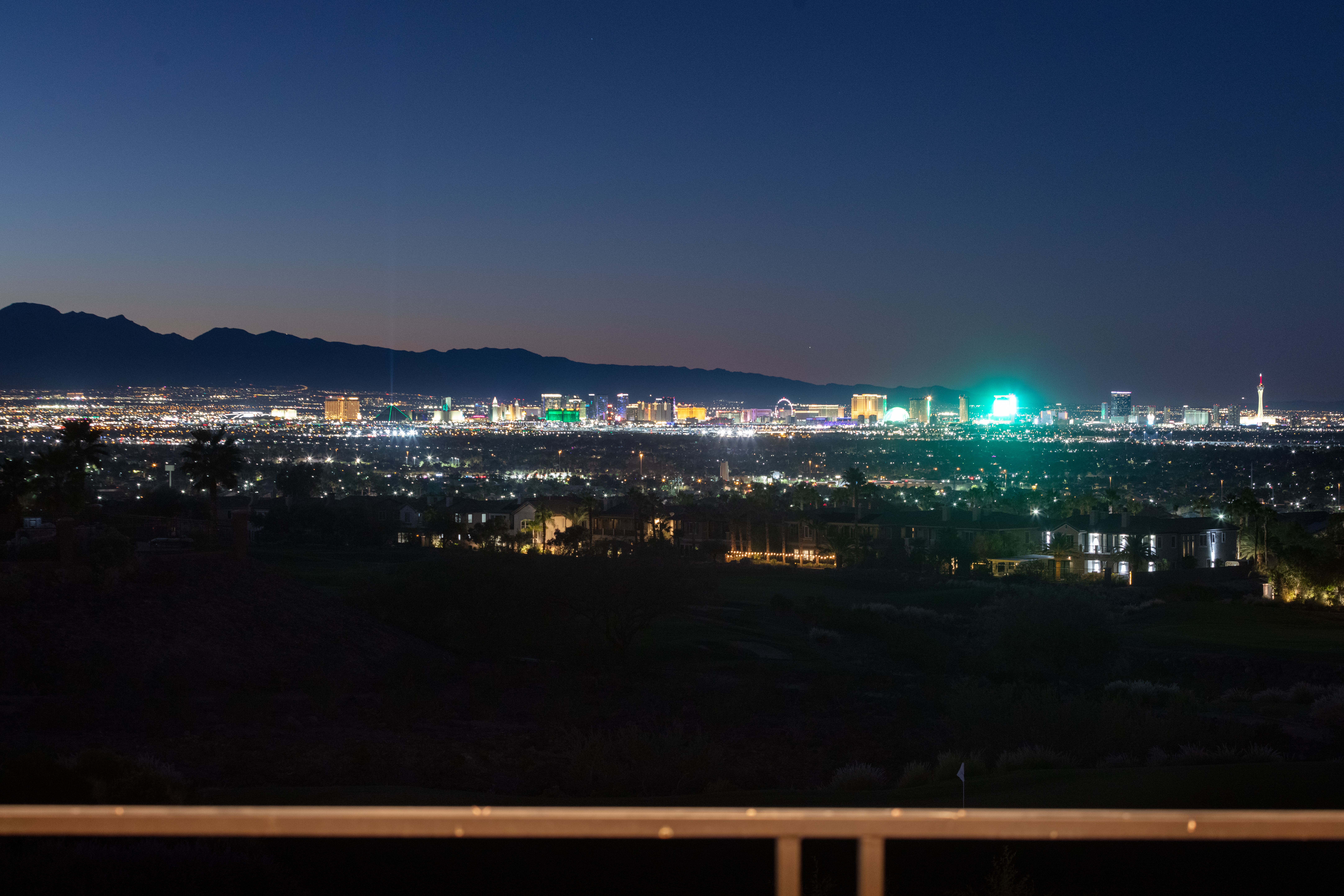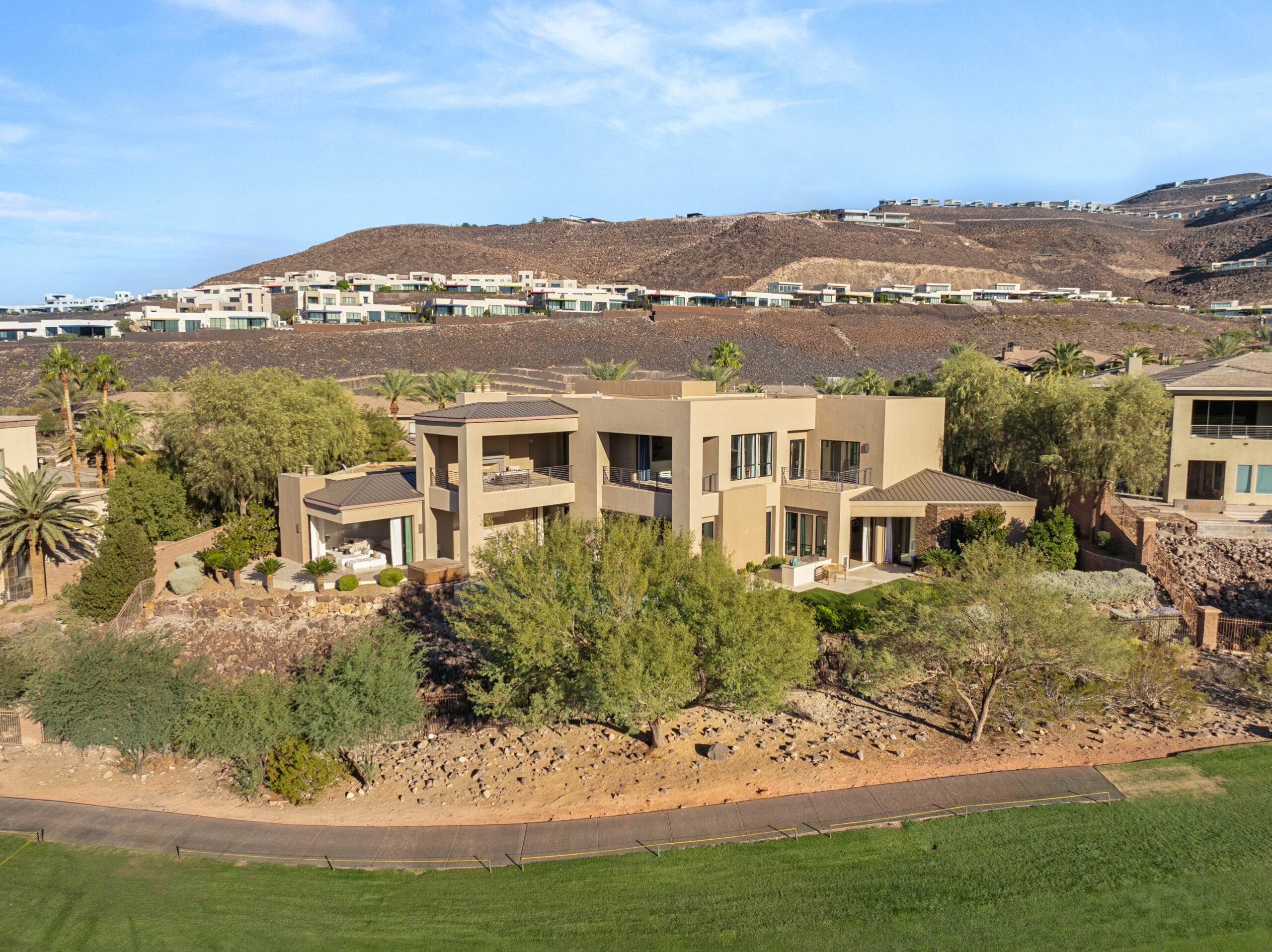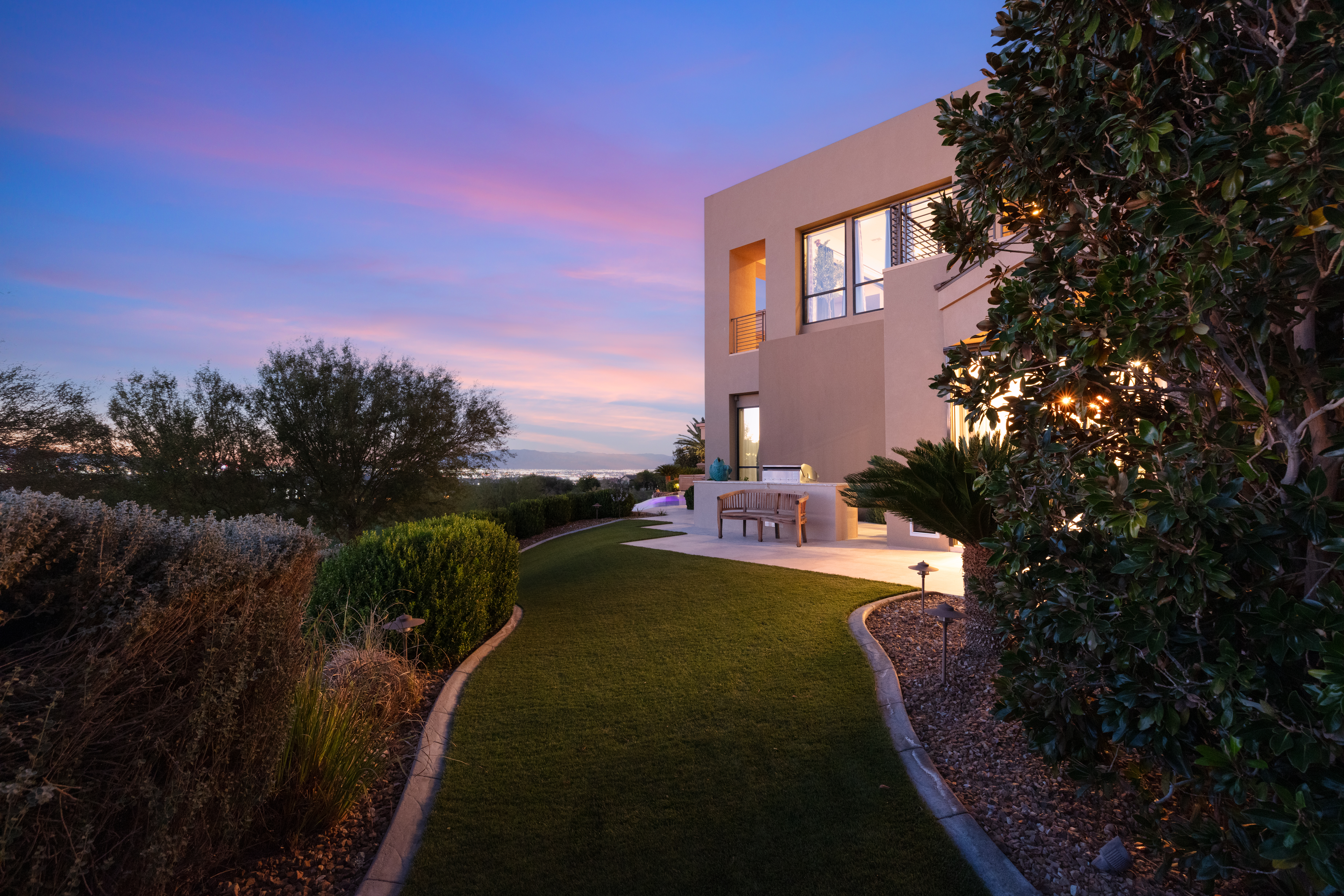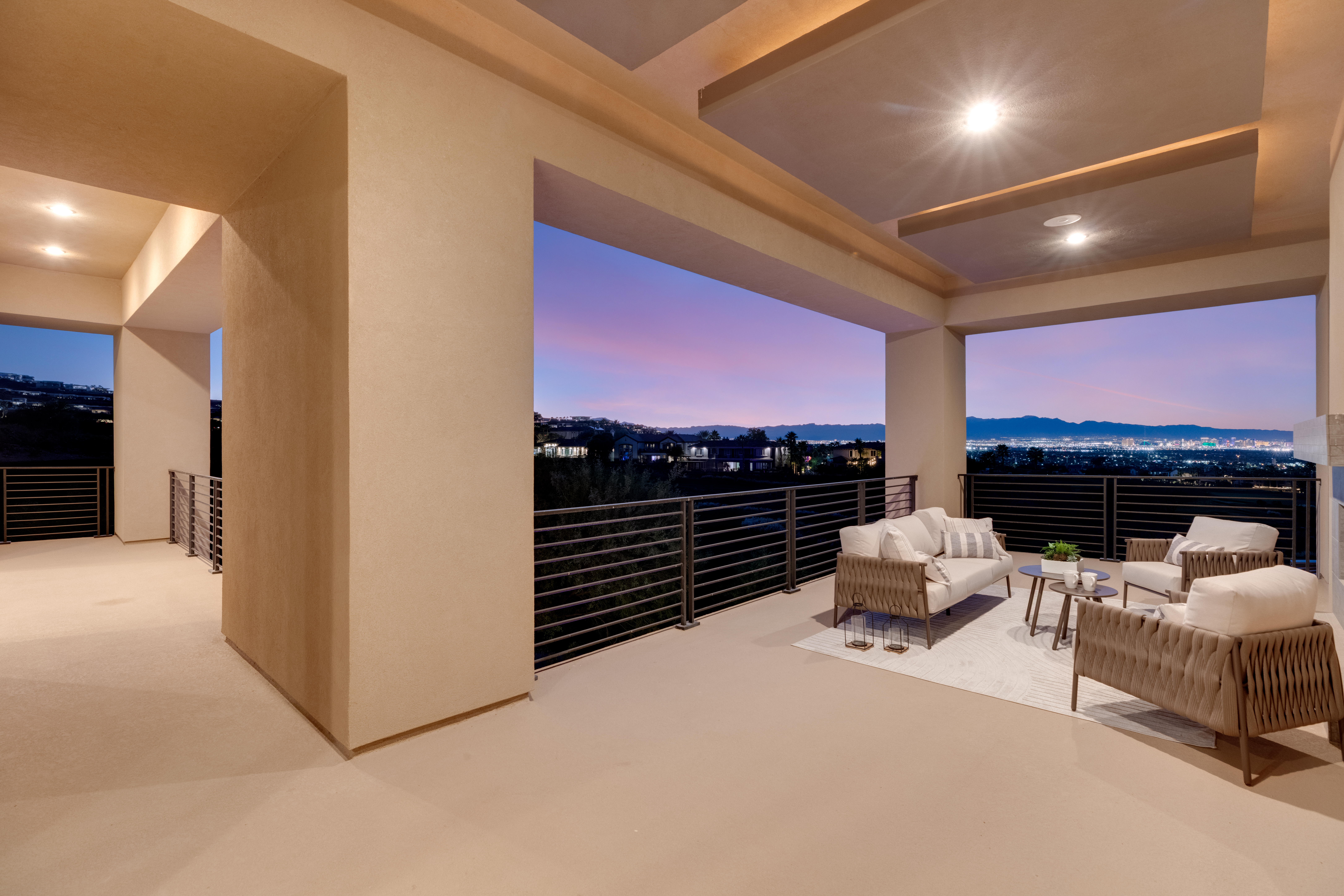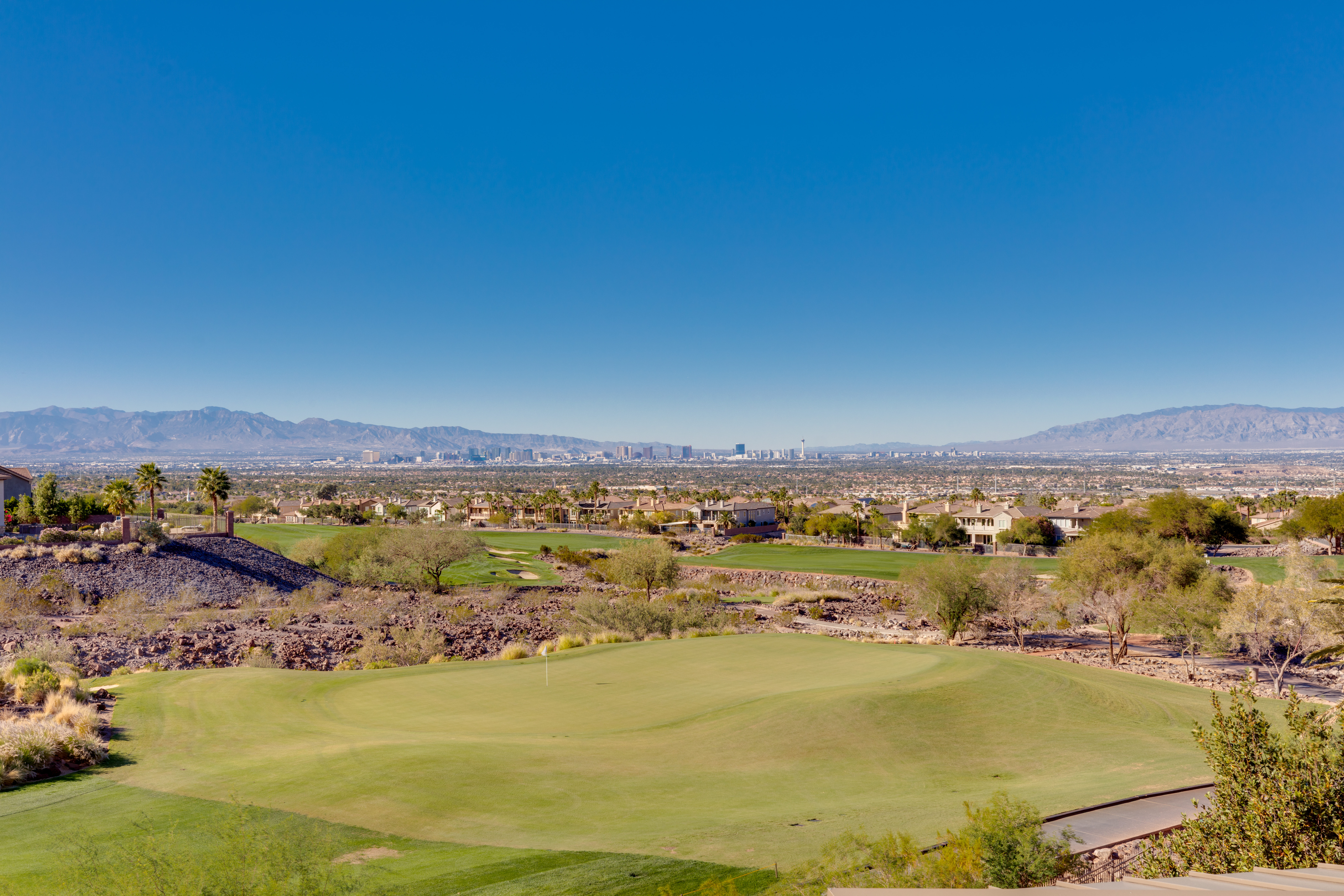 Perched above the valley within the prestigious guard-gated community of MacDonald Highlands, 583 Saint Croix Street is a 9,614-square-foot contemporary estate that captures sweeping views of the Las Vegas Strip, Dragon Ridge Golf Course, and Red Rock Mountains. Set on over half an acre, this custom home blends modern elegance with warmth and light, featuring five bedrooms including two primary suites, seven bathrooms, a private office, theater, game room, formal dining, chef’s kitchen with butler’s pantry, three fireplaces, elevator, and a four-car garage with new epoxy flooring. Fleetwood glass doors open to an outdoor sanctuary with a zero-edge pool, spa, fireplace, BBQ island, and putting green—an entertainer’s dream beneath Nevada skies. Upstairs, a rooftop and wraparound balcony with fireplace frame the city in every direction, offering a front-row view of the desert’s most dazzling horizon where luxury meets light.