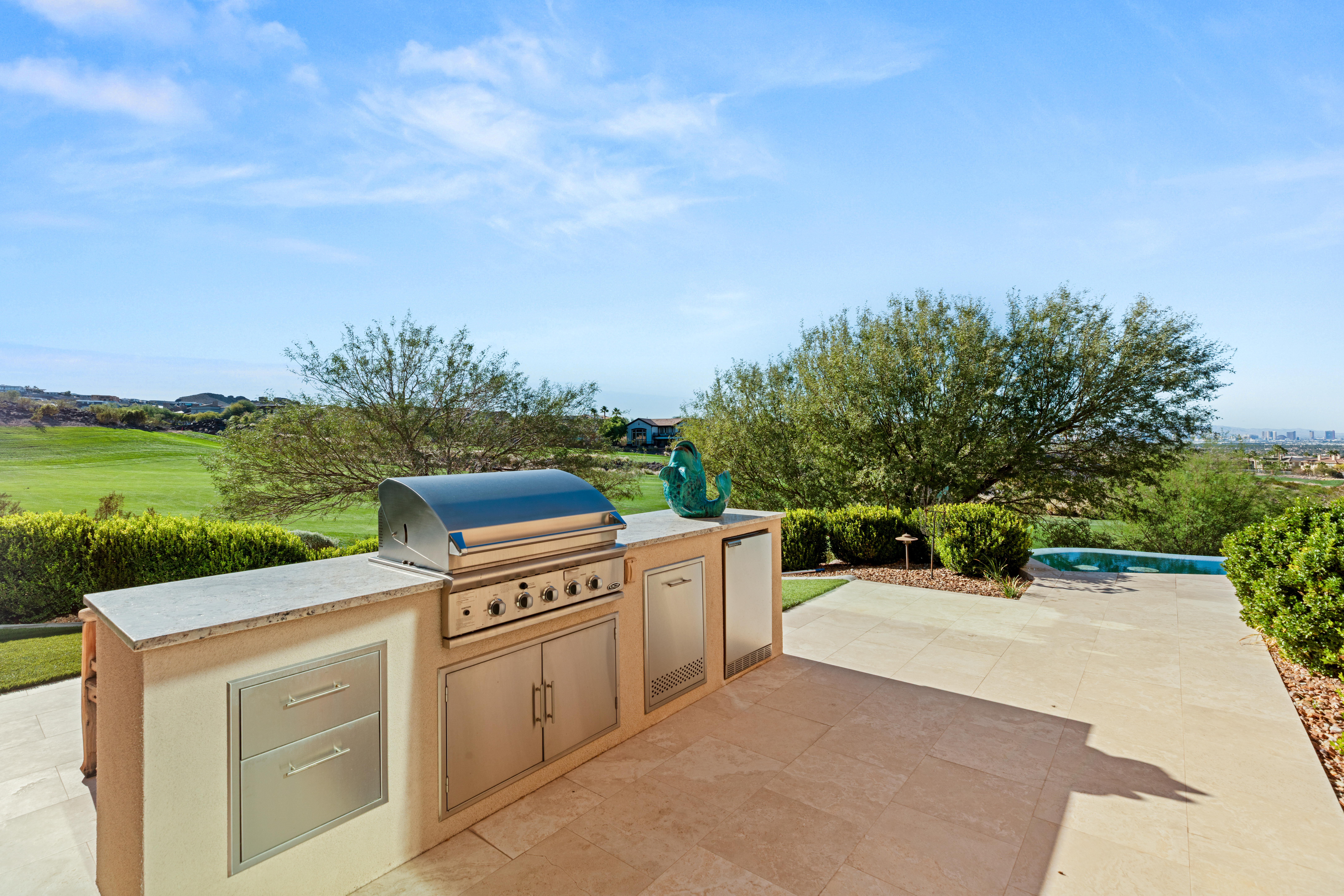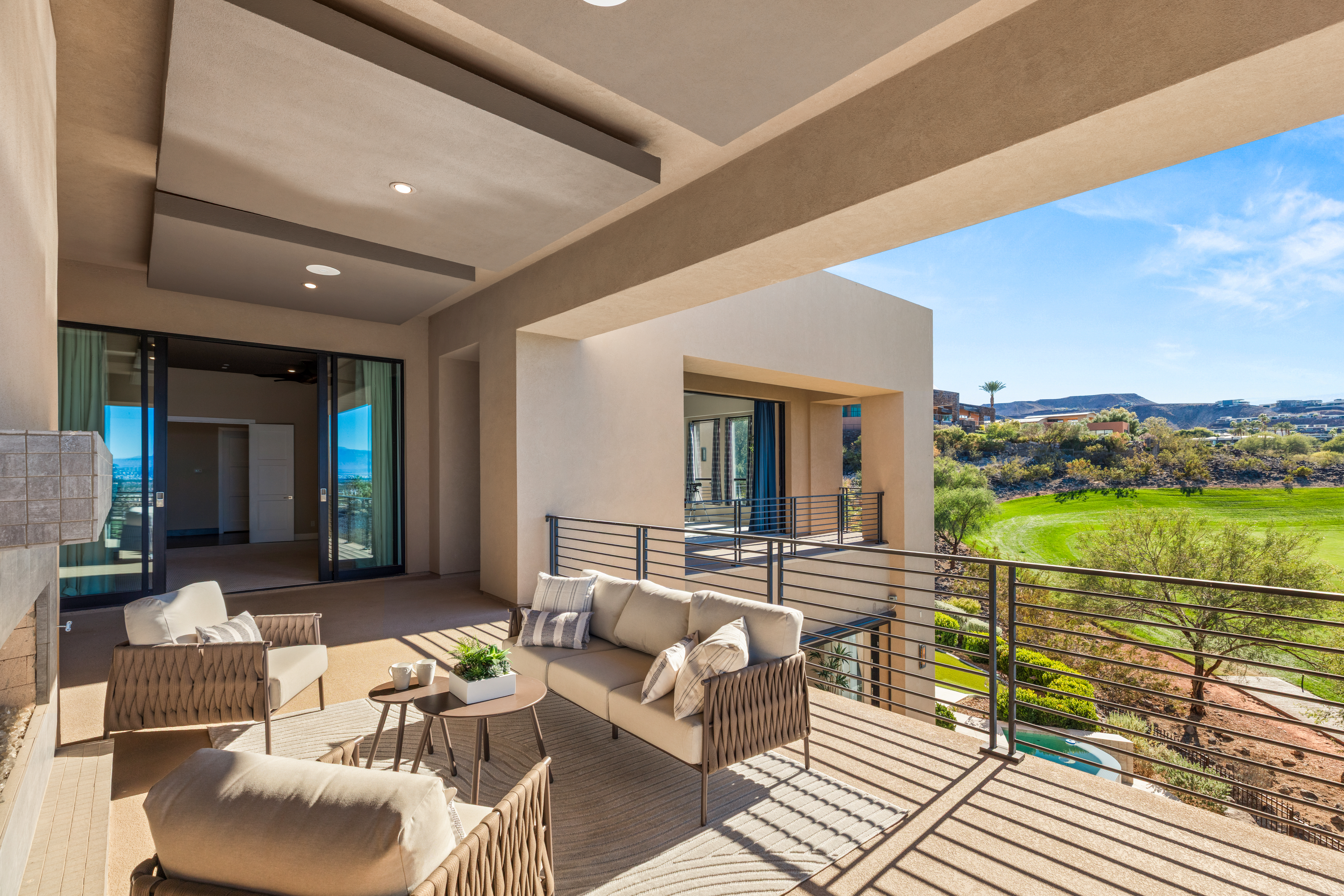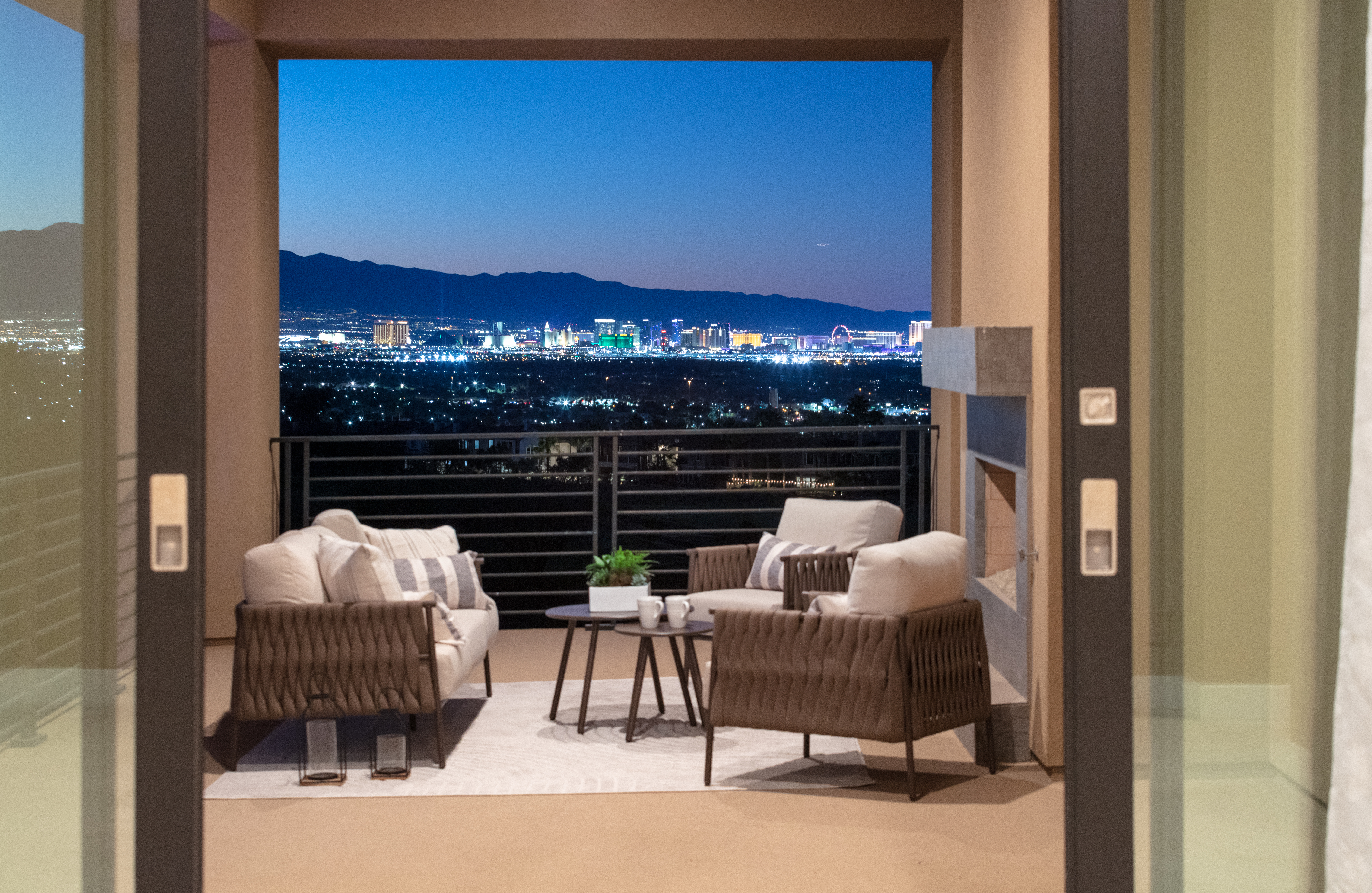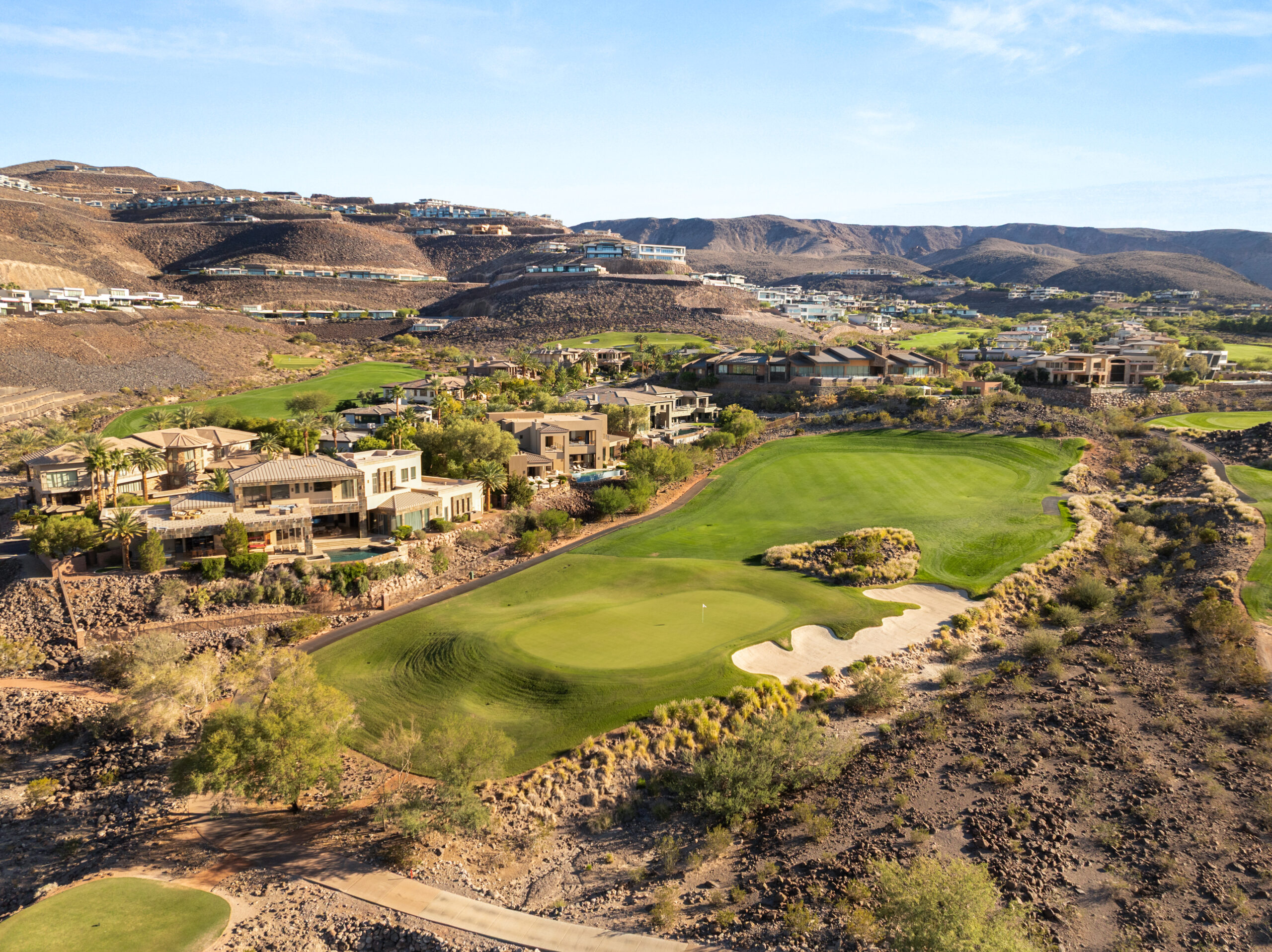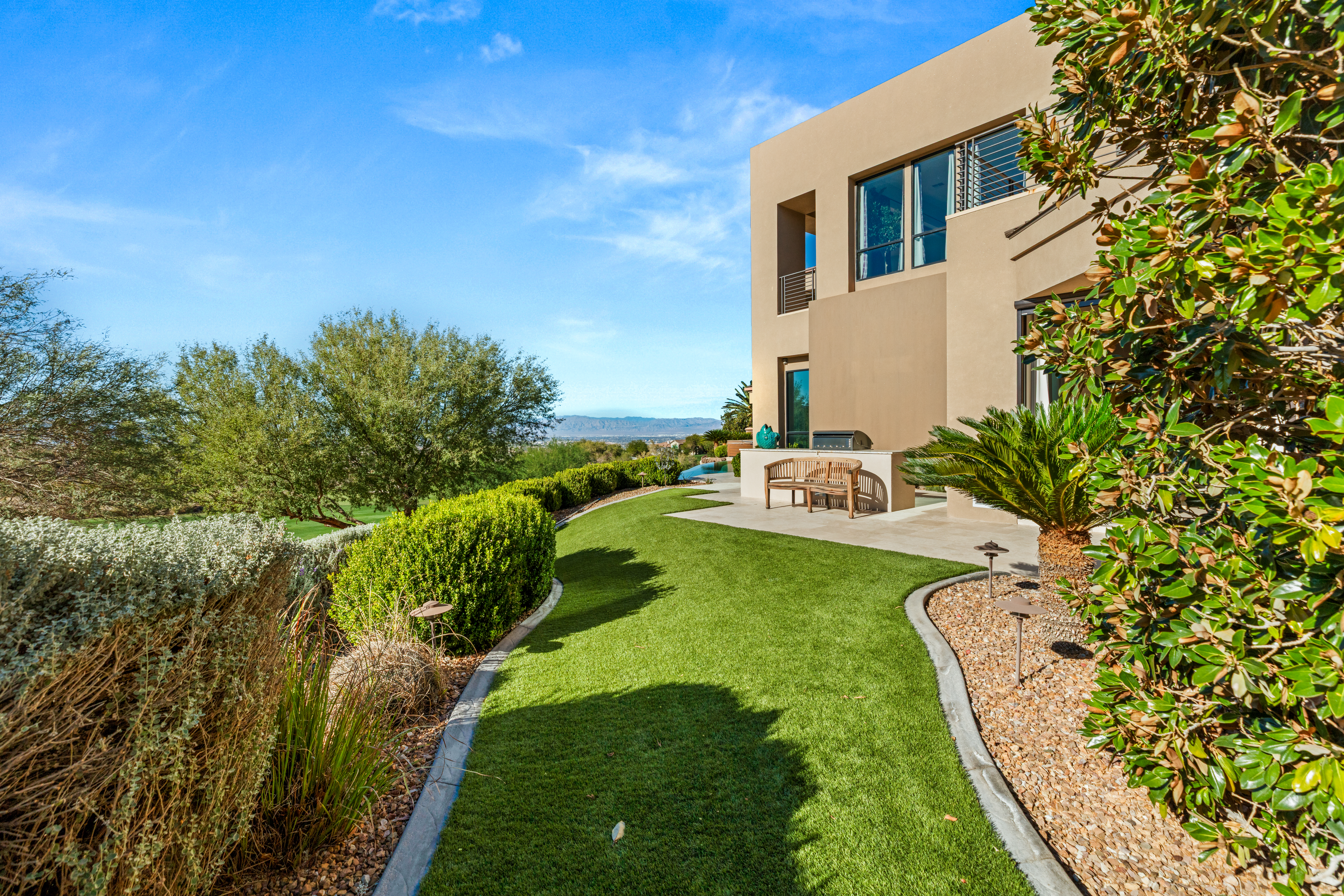Perched above the valley within the prestigious guard-gated community of MacDonald Highlands, 583 Saint Croix Street is a 9,614-square-foot contemporary estate that captures sweeping views of the Las Vegas Strip, Dragon Ridge Golf Course, and Red Rock Mountains. Set on over half an acre, this custom home blends modern elegance with warmth and light, featuring five bedrooms including two primary suites, seven bathrooms, a private office, theater, game room, formal dining, chef’s kitchen with butler’s pantry, three fireplaces, elevator, and a four-car garage with new epoxy flooring. Fleetwood glass doors open to an outdoor sanctuary with a zero-edge pool, spa, fireplace, BBQ island, and putting green—an entertainer’s dream beneath Nevada skies. Upstairs, a rooftop and wraparound balcony with fireplace frame the city in every direction, offering a front-row view of the desert’s most dazzling horizon where luxury meets light.