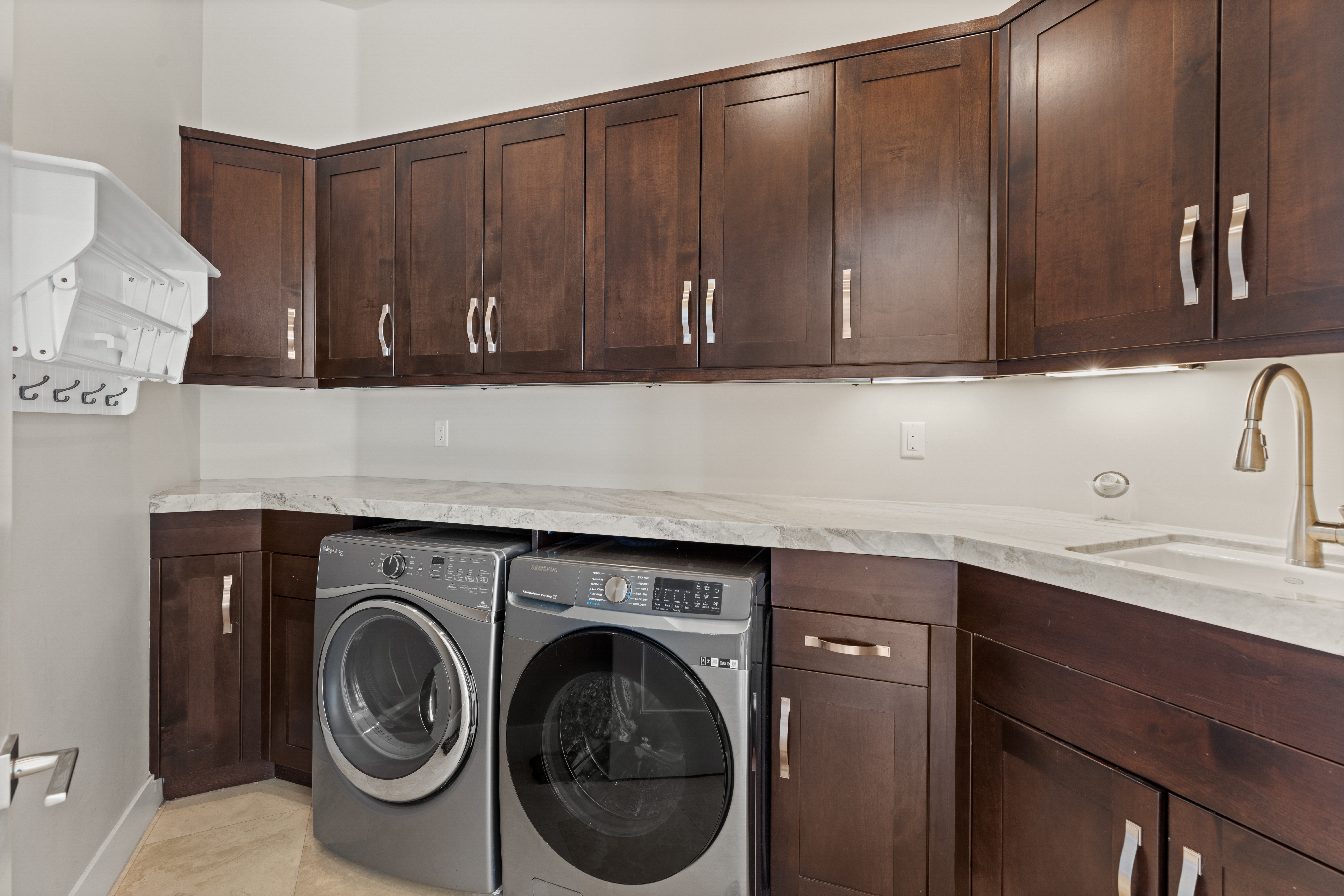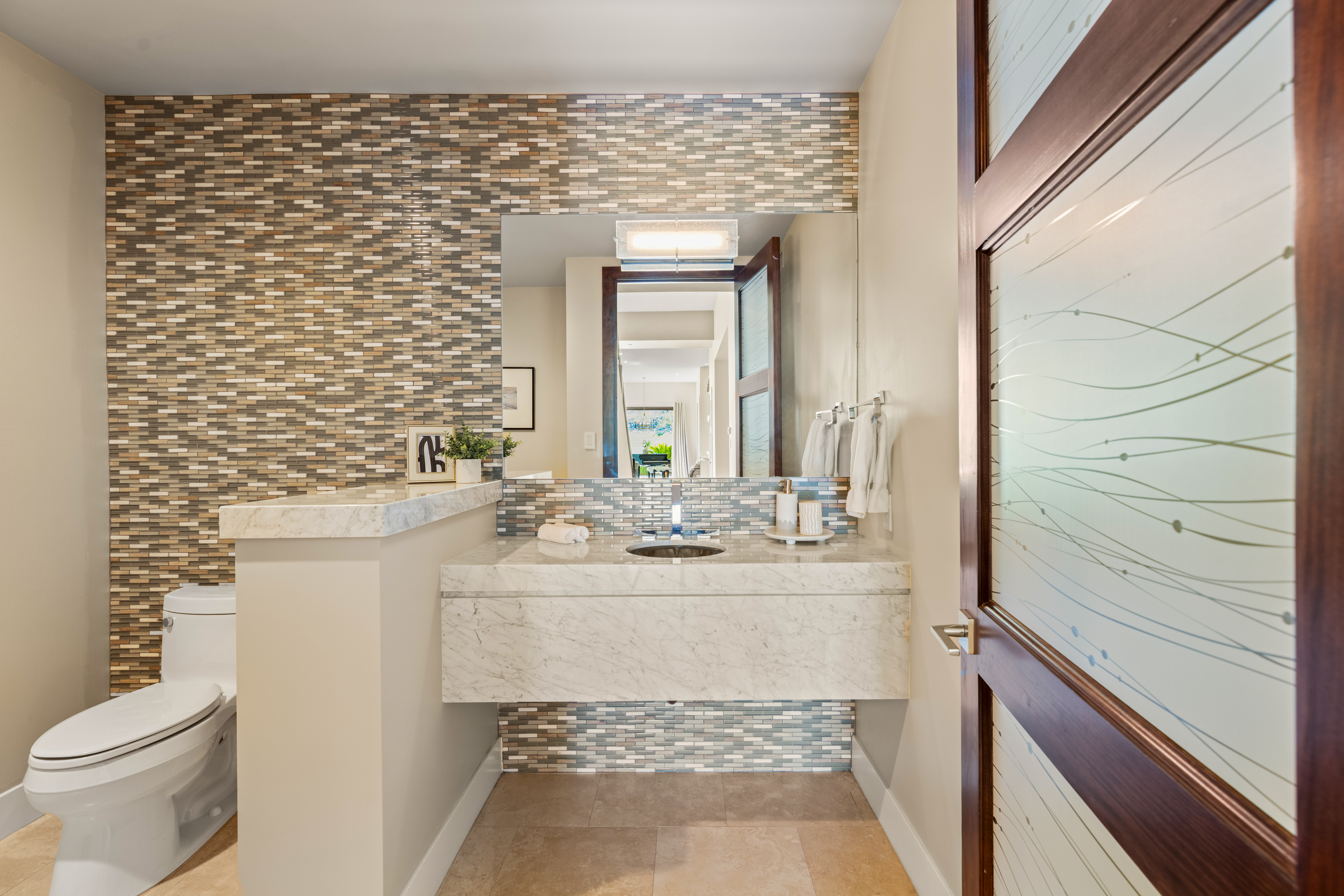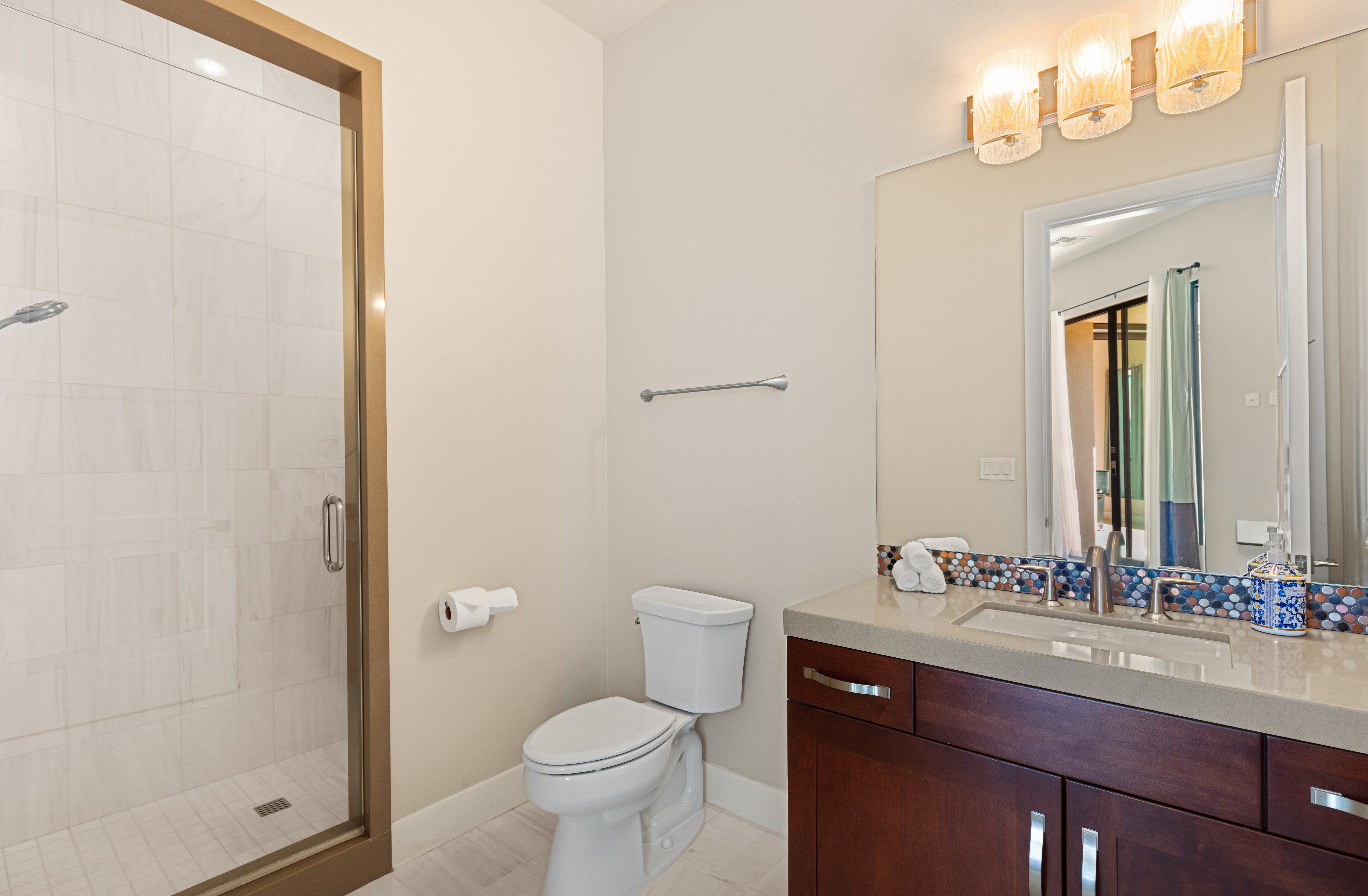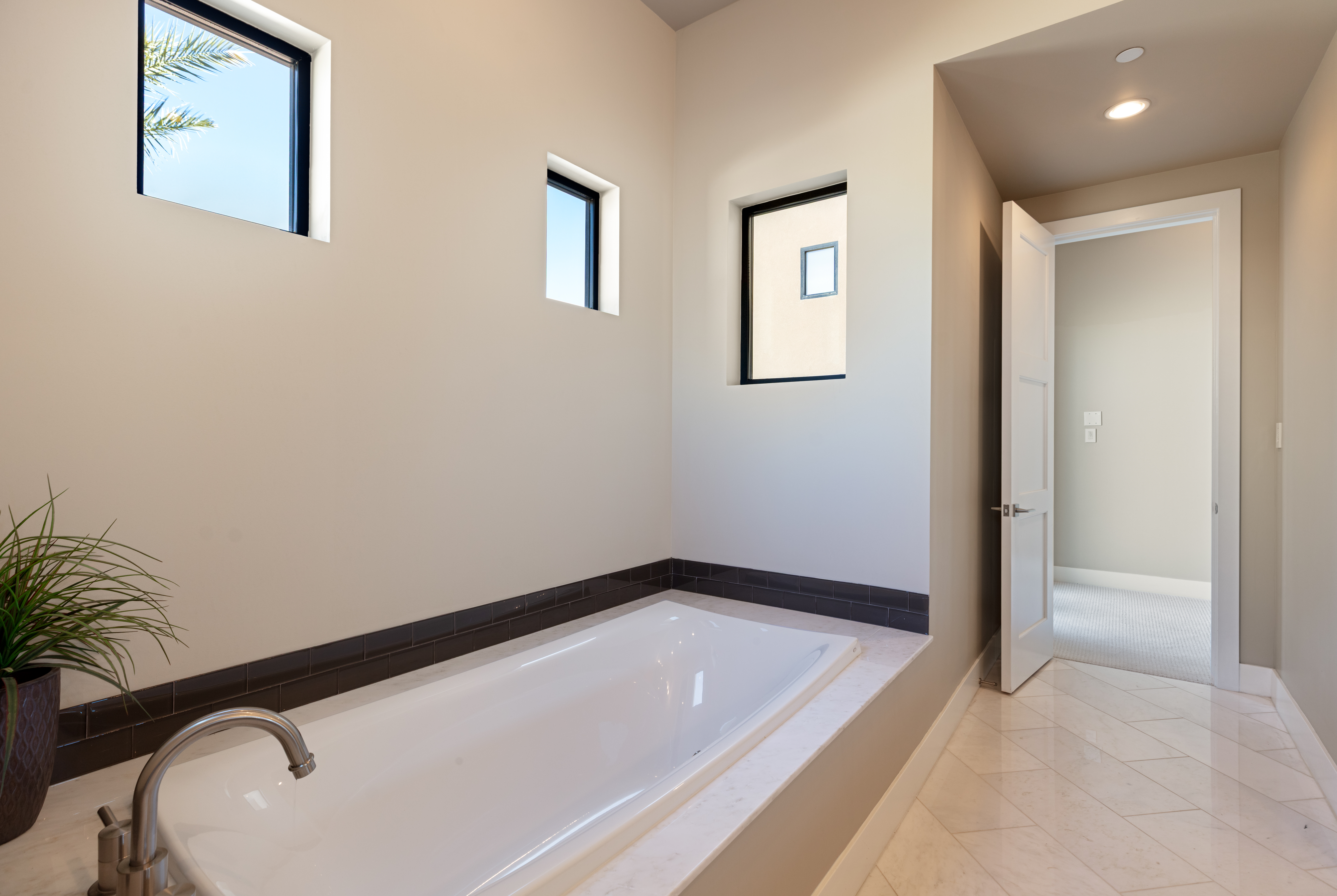 Designed with serenity in mind, the primary bath features dual vanities, a deep soaking tub, and spa-like finishes that create a true sense of escape. Subtle textures, warm lighting, and refined tilework transform everyday routines into moments of quiet indulgence.