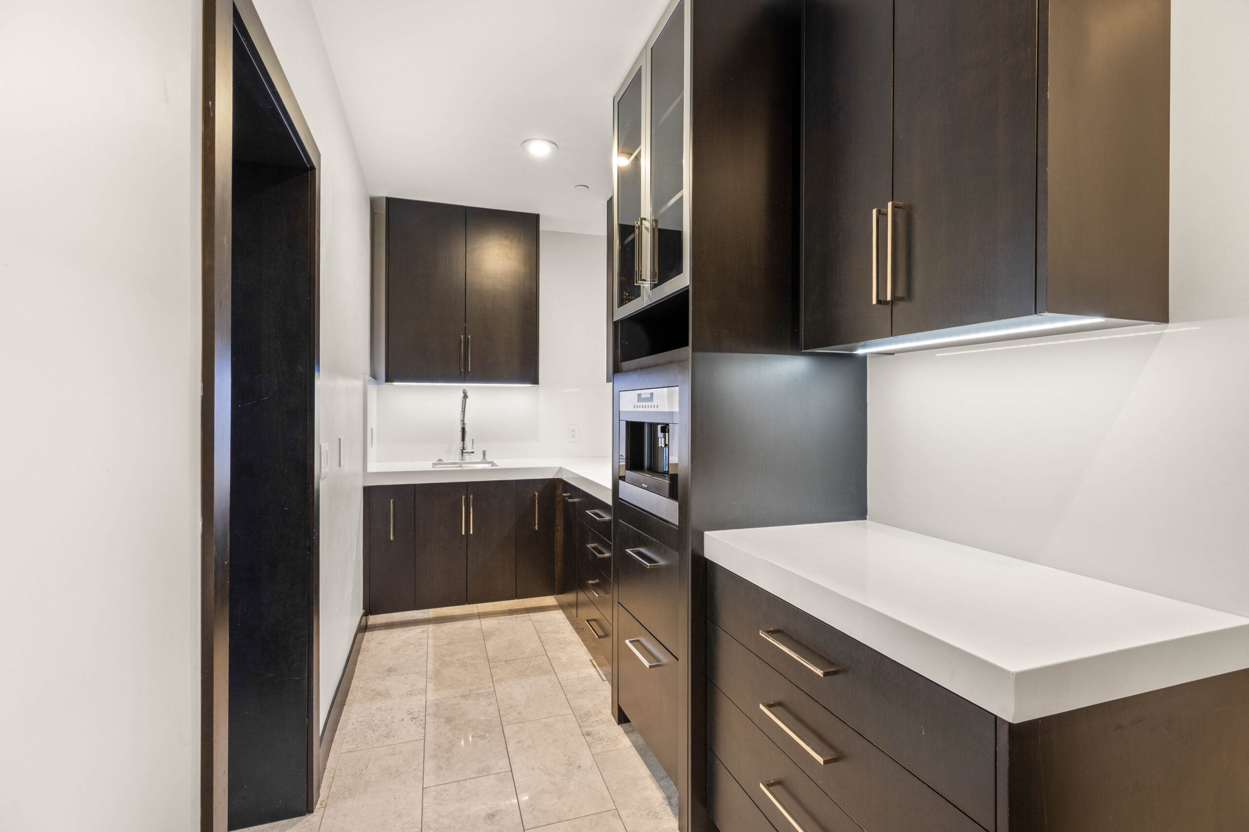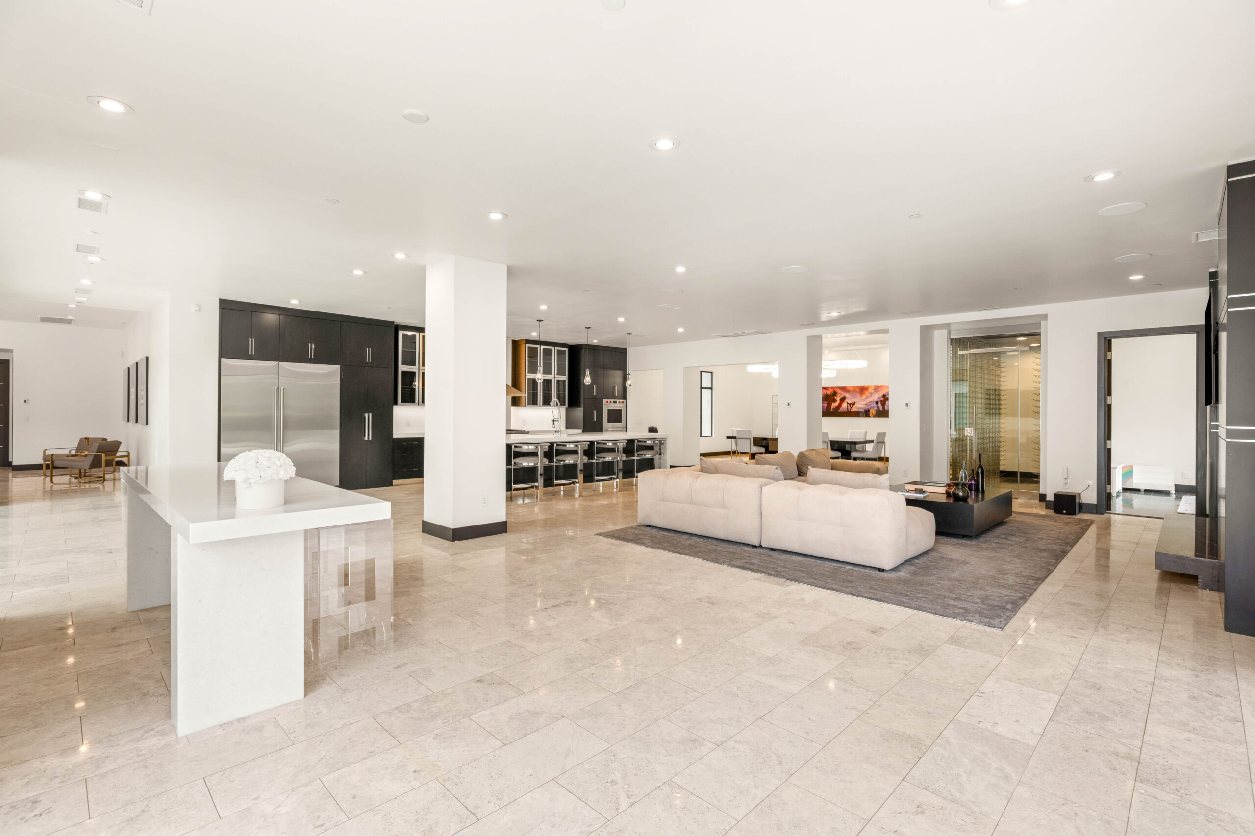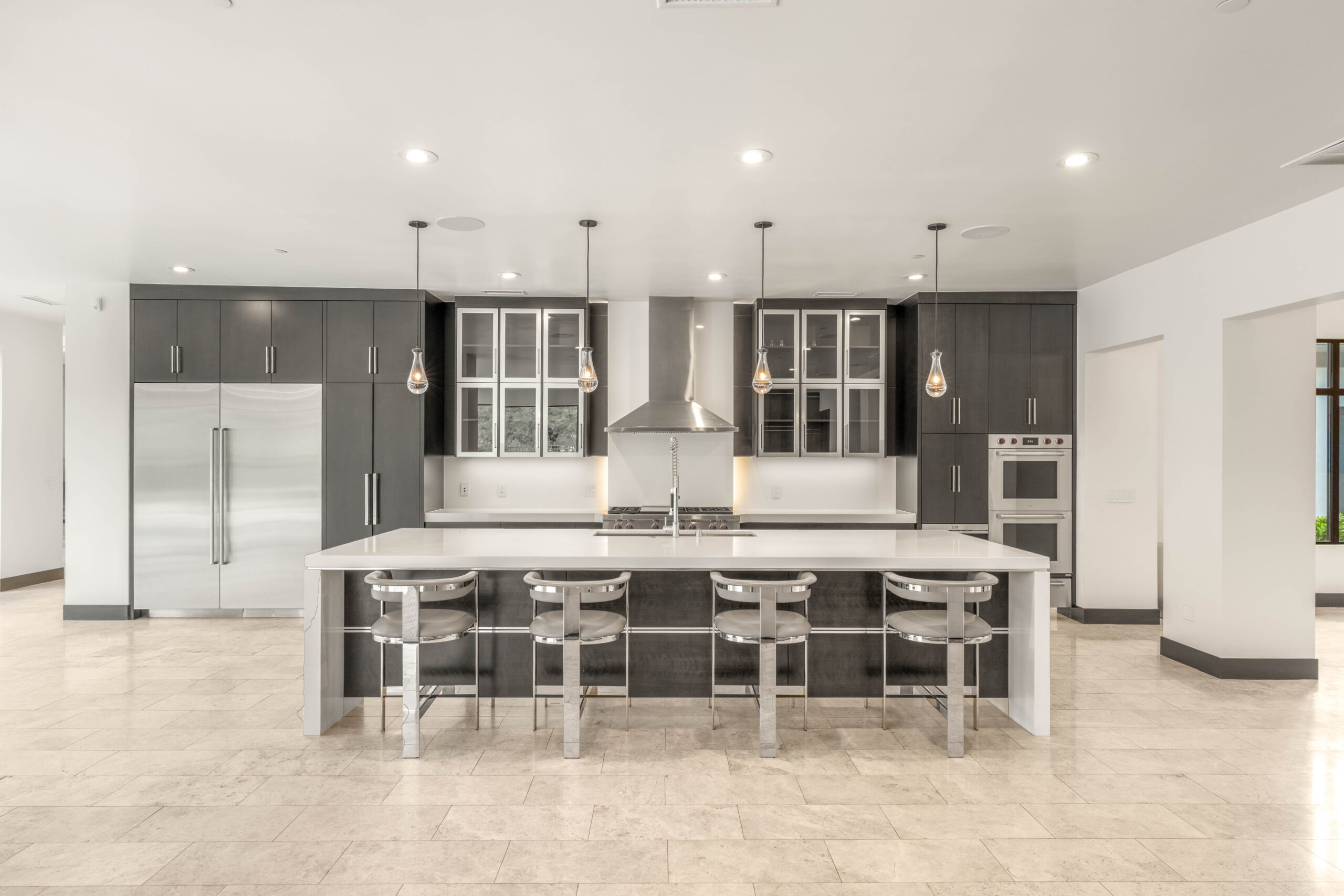 Anchoring daily life and entertaining alike, the kitchen is designed with both precision and presence. A generous island, professional-grade appliances, and refined cabinetry create a space that’s equally functional and visually striking. A concealed butler’s pantry enhances flow and organization, supporting effortless hosting without interrupting the main space.