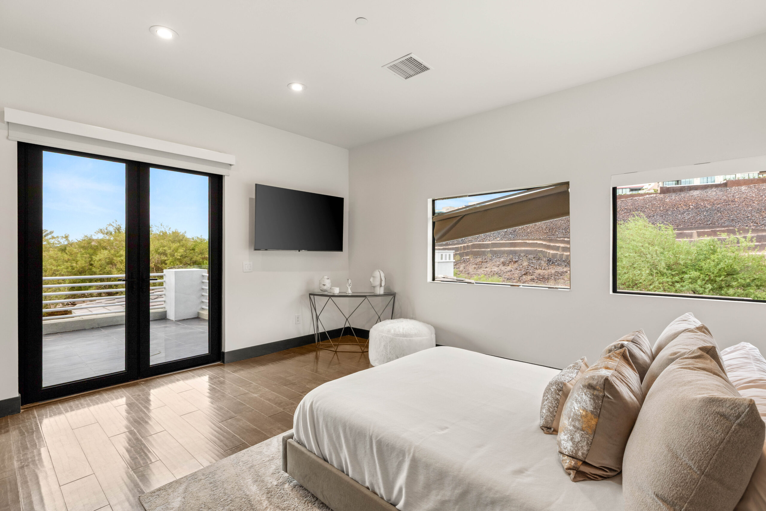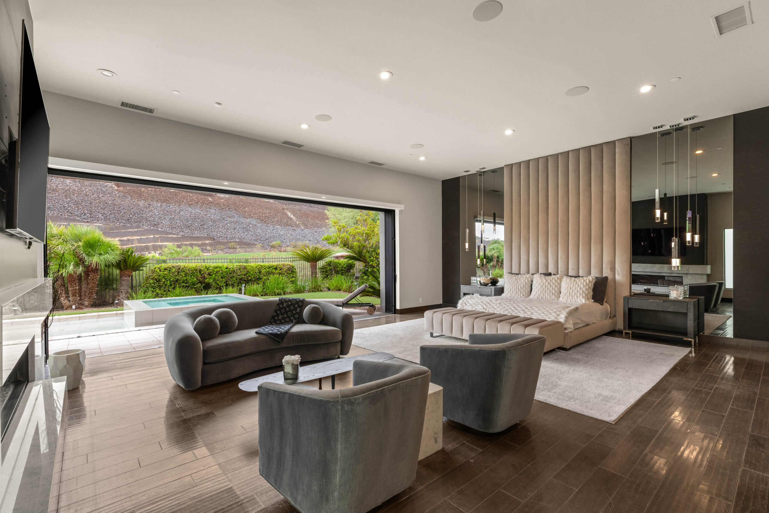 Designed as a serene escape, the primary suite offers a sense of calm and separation from the main living spaces. Generous proportions, soft natural light, and direct access to the outdoors create a restful environment, while refined finishes and thoughtful layout elevate the suite into a true retreat within the home.