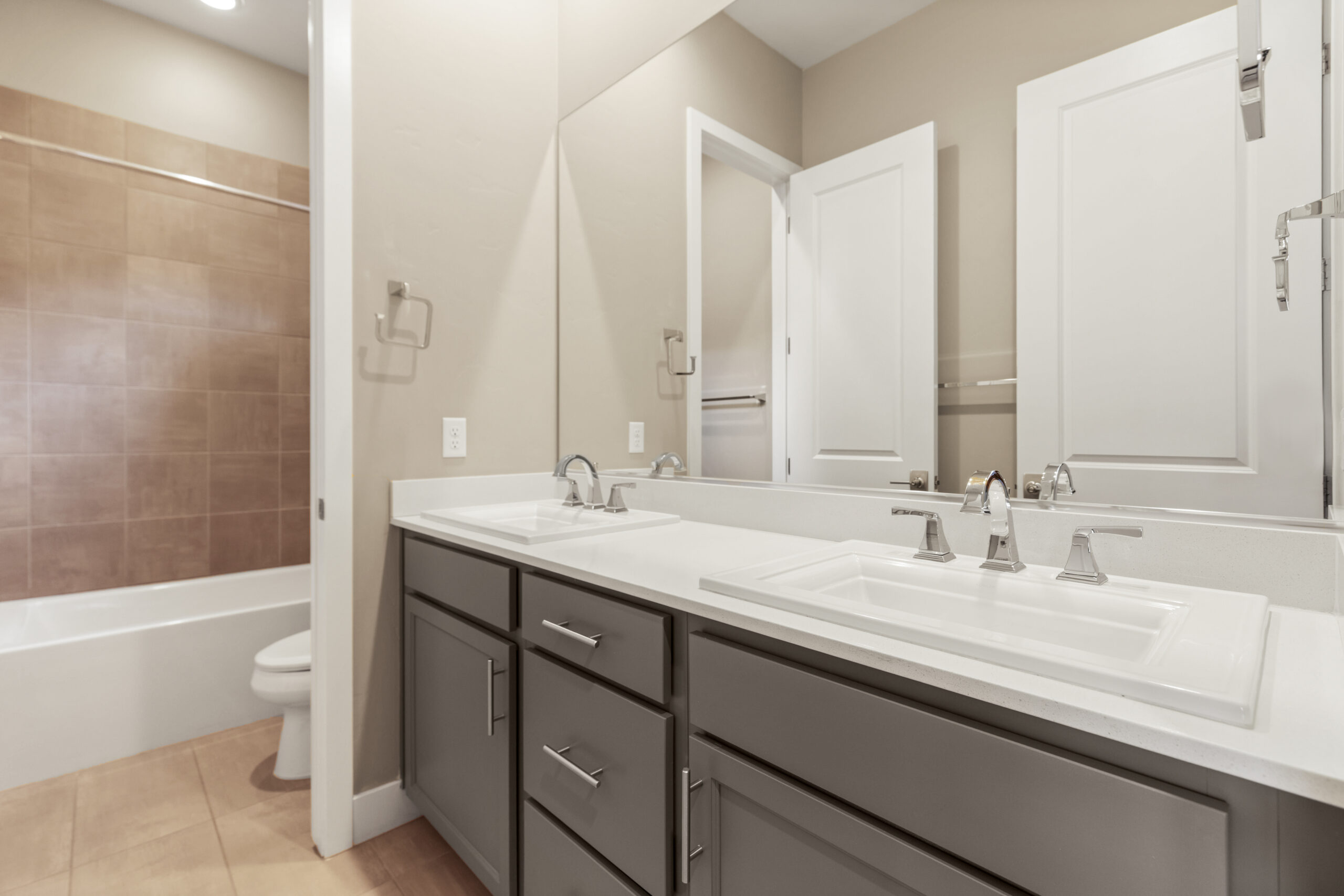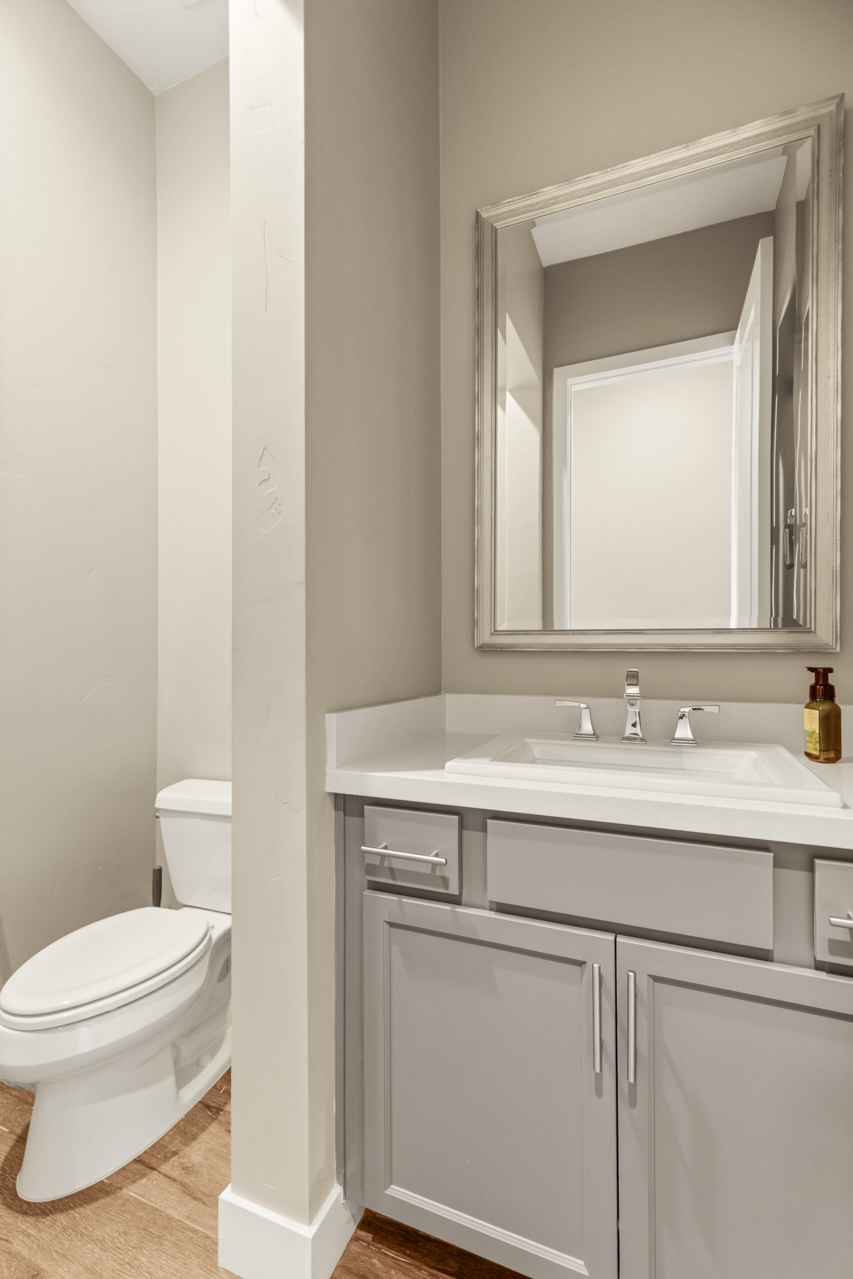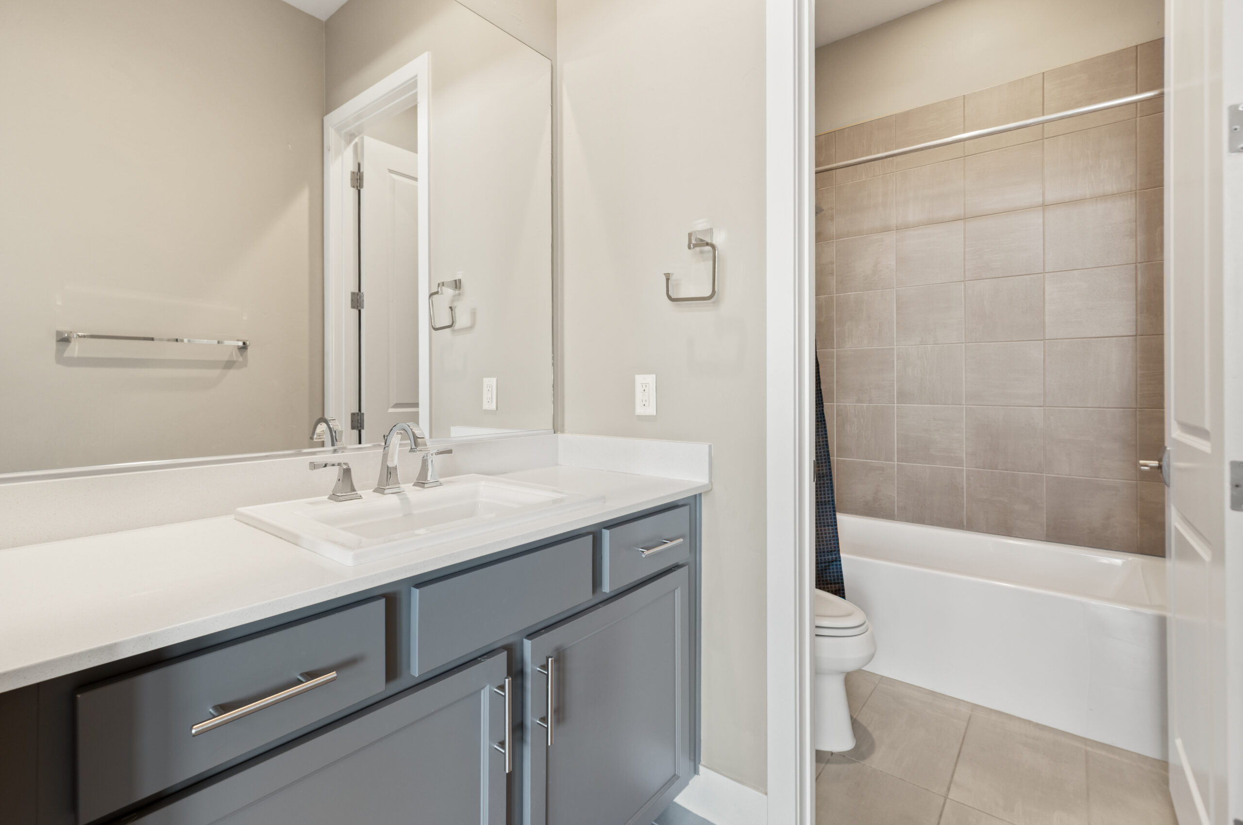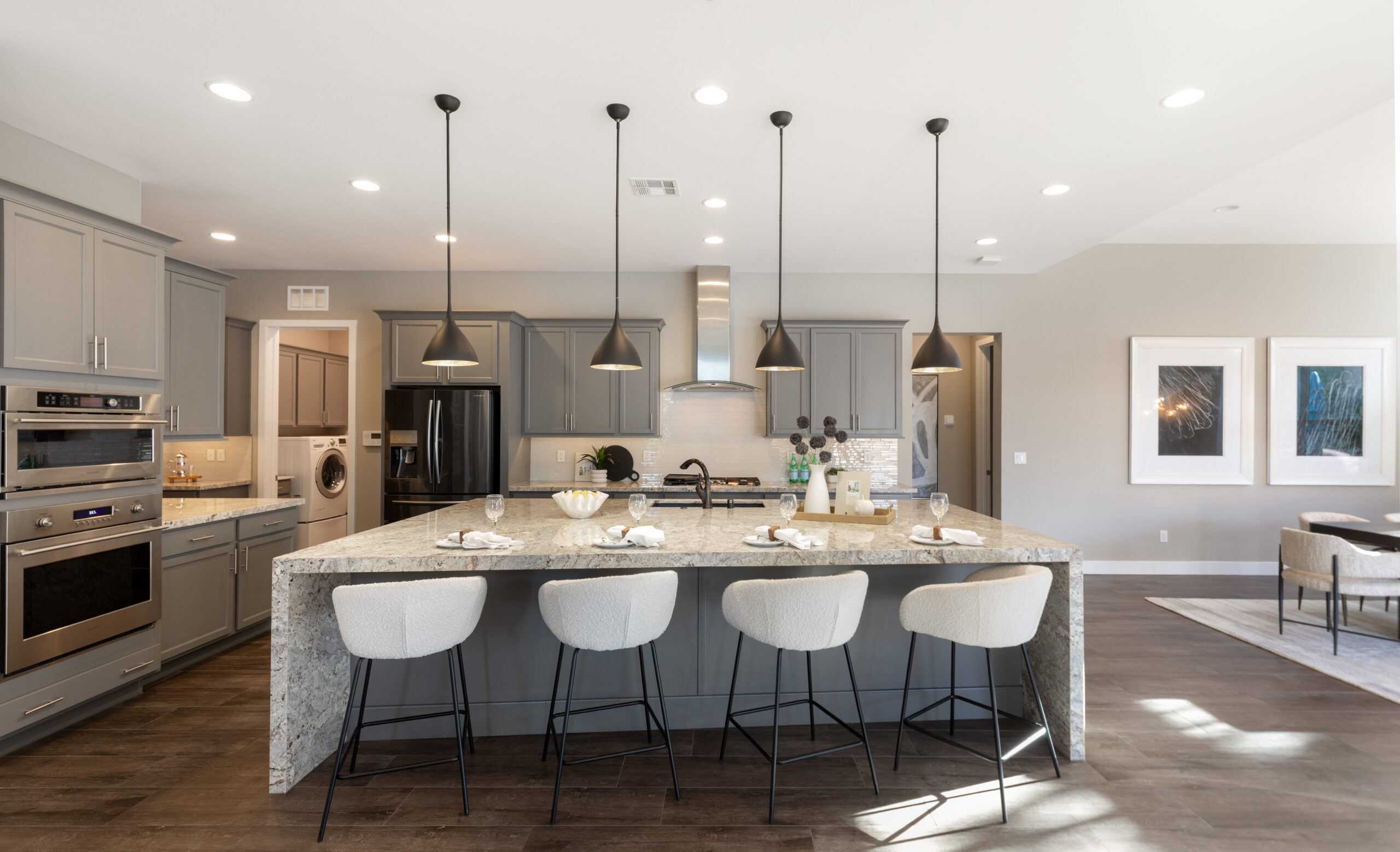 Positioned at the center, the kitchen balances function and design with generous cabinetry, modern appliances, and a substantial island that grounds the space. It connects every part of the home, allowing movement to feel intuitive while keeping everything within reach.