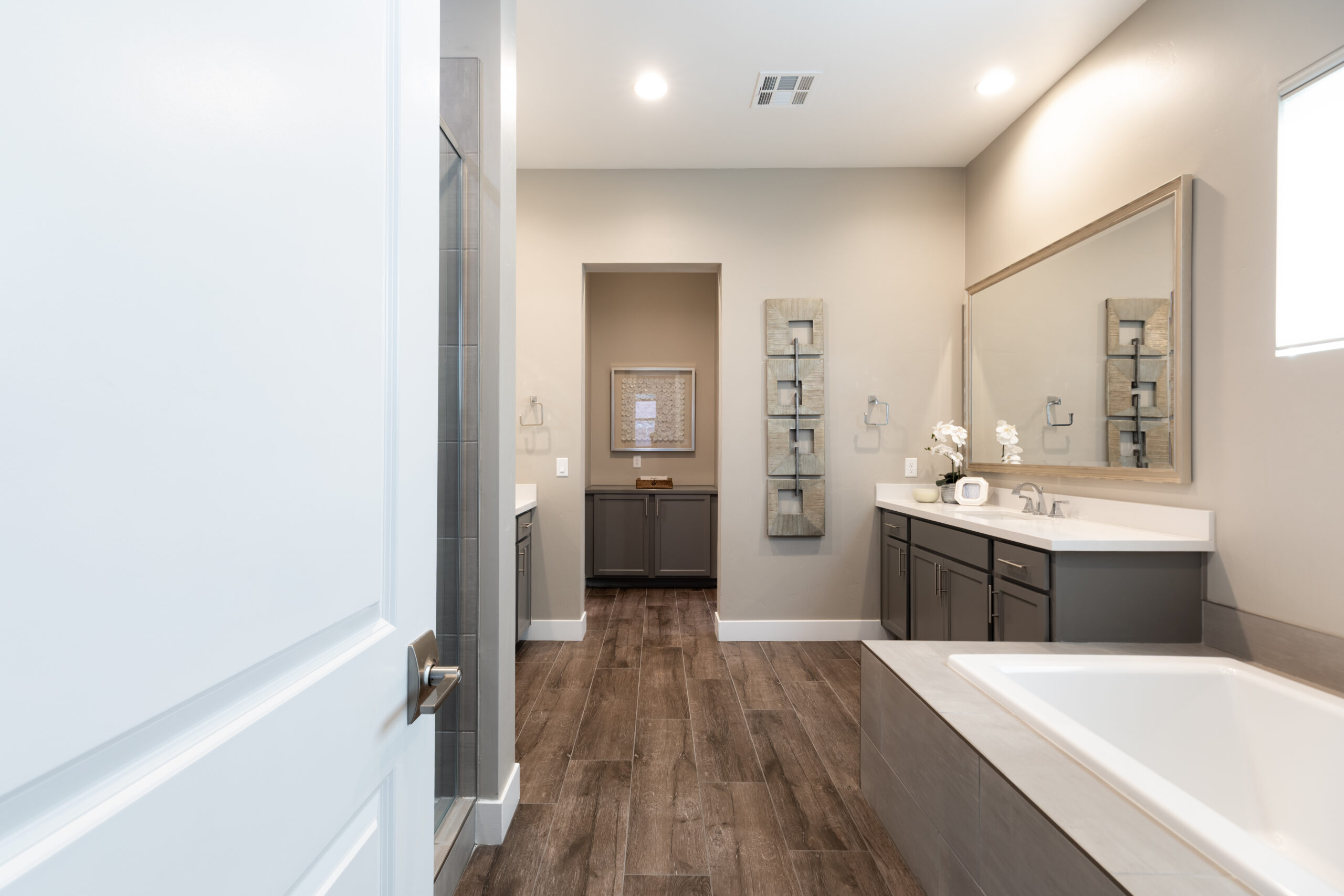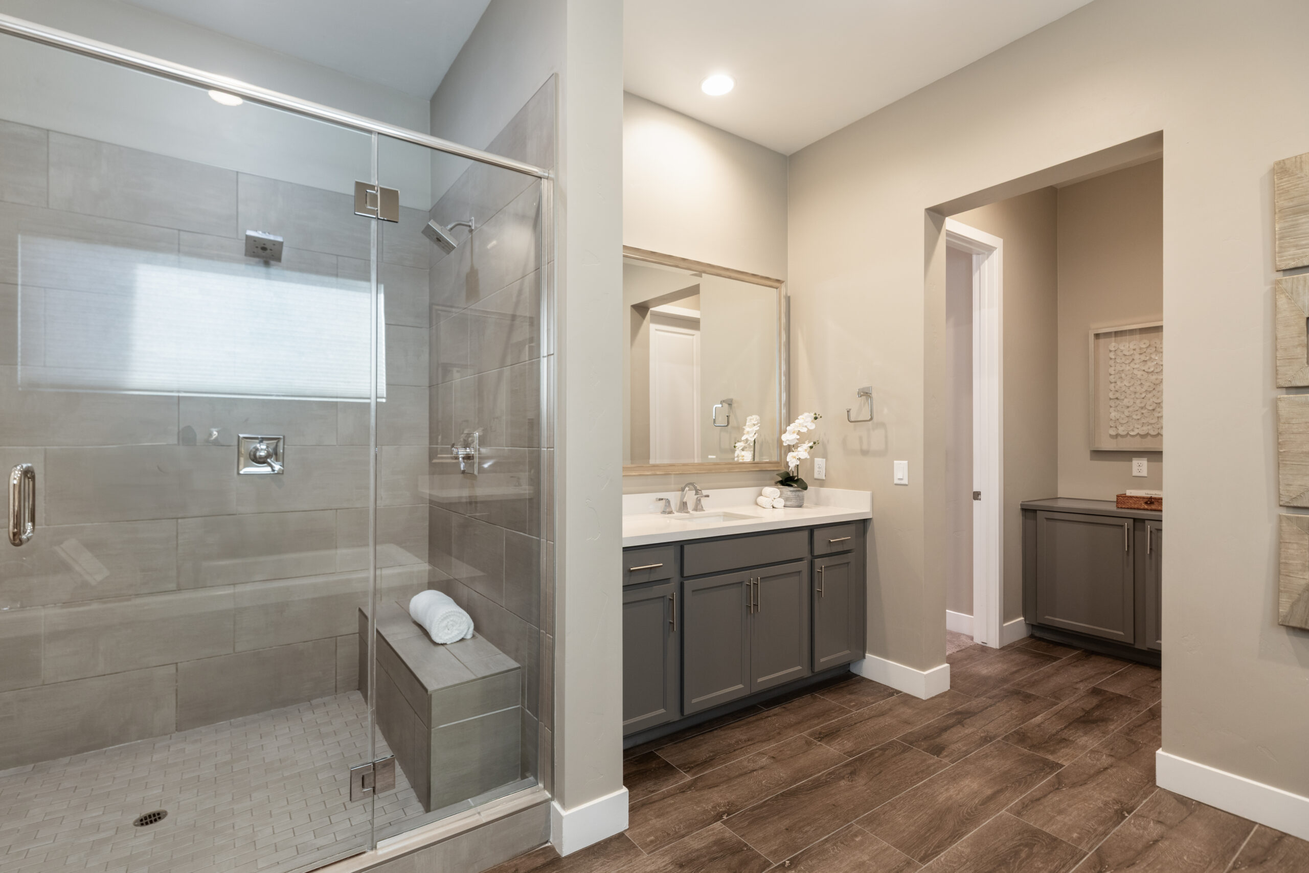 Tucked away for privacy, the primary suite offers a quiet place to unwind. Soft light, generous proportions, and a calm, neutral palette create a sense of ease, making it a space designed as much for rest as it is for retreat.